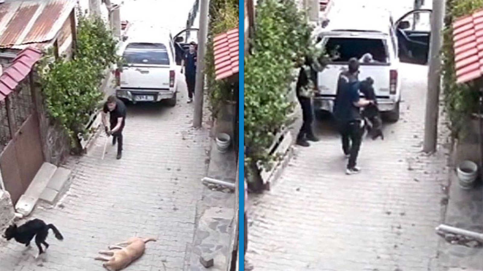 Olay, dün ilçe merkezinde meydana geldi. Mudurnu Belediyesi ekipleri, sokak hayvanlarını toplatmak için çalışma başlattı. Belediyeye ait araçla sokağa gelen 2 belediye personelinden biri, uyuşturucu iğne ile 2 köpeği bayılttı. Belediye ekibi daha sonra topladıkları köpekleri geldikleri aracın kasasına fırlattı, o anlar bir evin güvenlik kamerasına yansıdı.