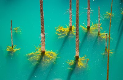 Ama aynı derecede olmasa da daha çarpıcı olan bu ağaçlardır. Bir asırdan fazla süredir güneş ışığı nedeniyle ağarmış olan ağaçların “yanlış yere yerleştirilmiş kürdanlar gibi suyun yüzeyinden fırladığı” belirtiliyor Hepsi İlginç – ve yüzeyin altında resim daha da merak uyandırıcı.