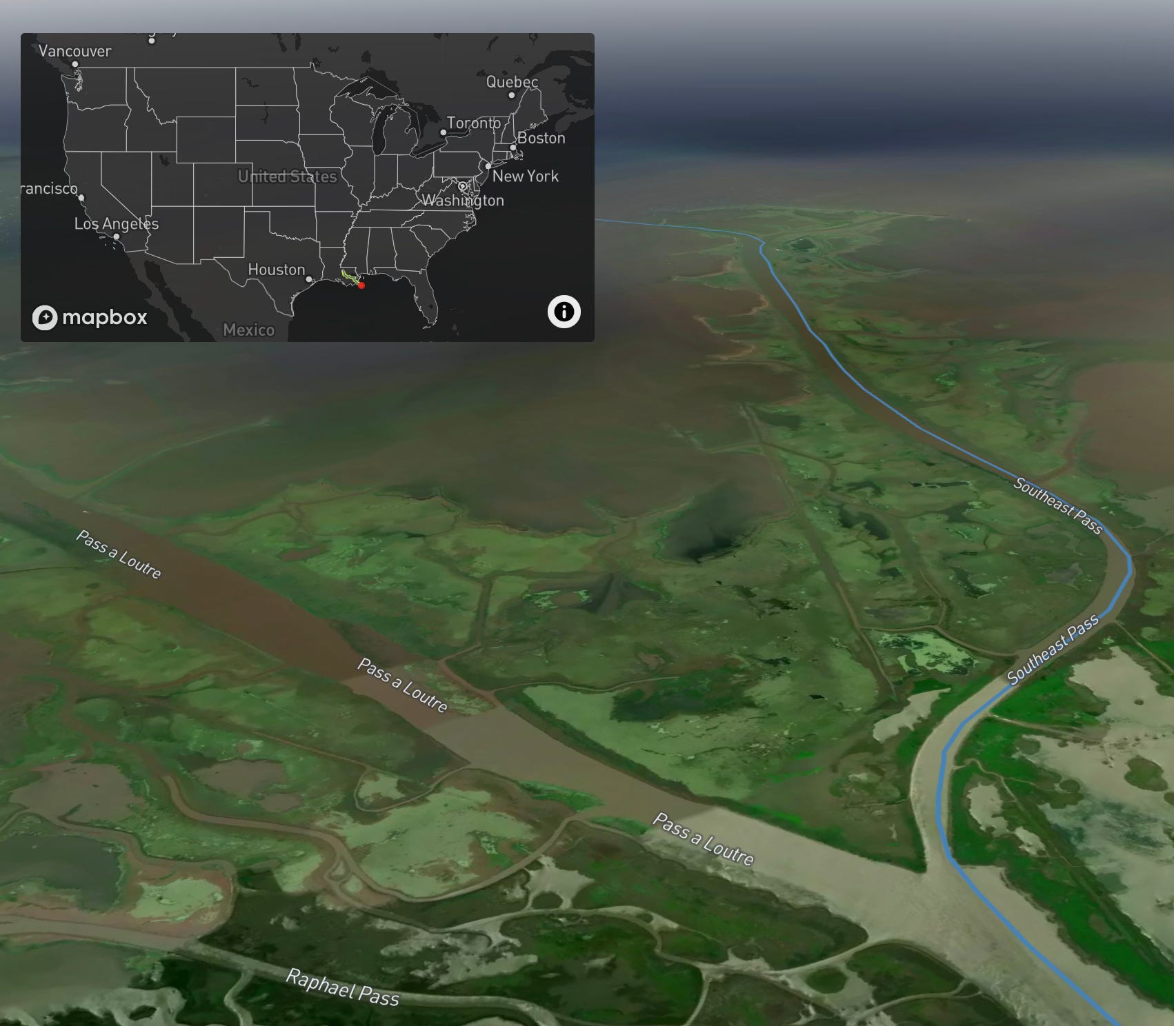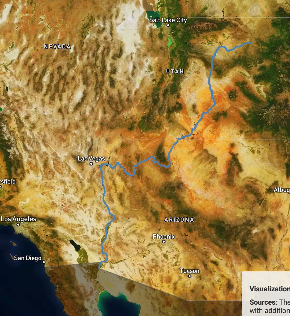 Ne yazık ki bu nehir denize akmadan önce Meksika’ya gittiğinden, yol sınırda gözaltına alınır (bu artık doğru değil – aşağıdaki güncellemeye bakın). Burada bir nehrin ağzına bir örnek görmek için Mississippi Meksika Körfezi’ne akan.