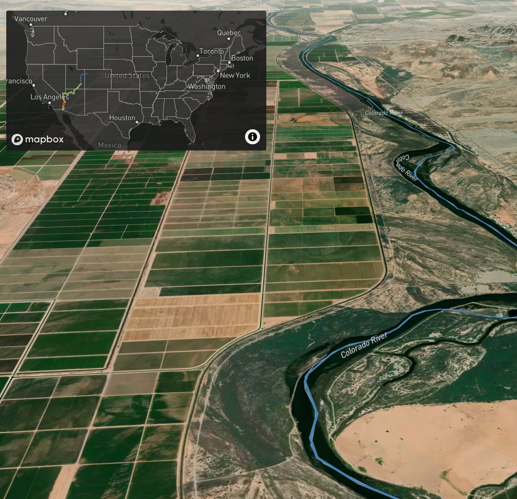 Ve burada Arizona-California sınırı boyunca tarımsal manzarada.