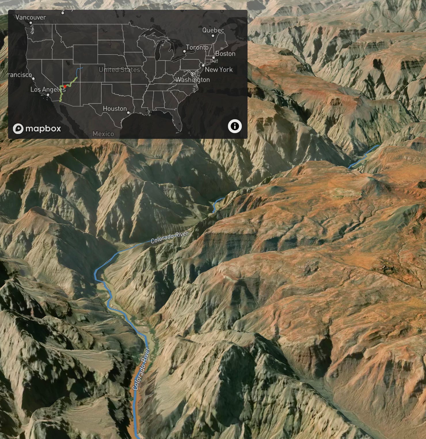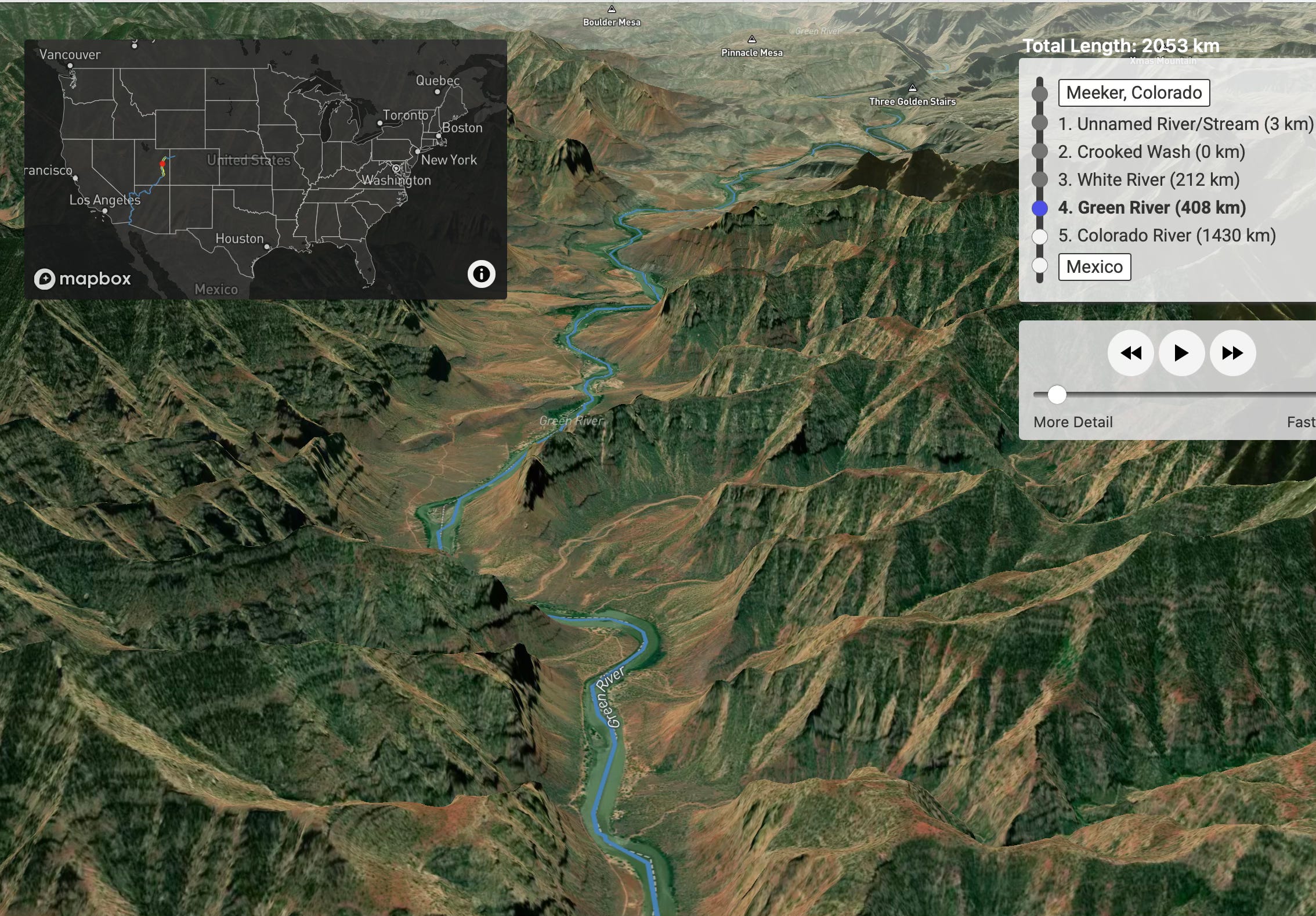 Nehir koşucusu bir araç SAM öğrenenFinancial Times’dan bir grafik gazeteci. Yüklendikten sonra, yağmur damlasının yolunu izleyen videodan bir sinek alacaksınız. Burada “isimsiz nehir” ten geçtikten sonra çarpık yıkama ve sonra beyaz nehirden geçtikten sonra yeşil nehirden akıyor. Tam ABD haritasındaki kırmızı, anında herhangi bir anda bulunduğunuz yerde işaretler.